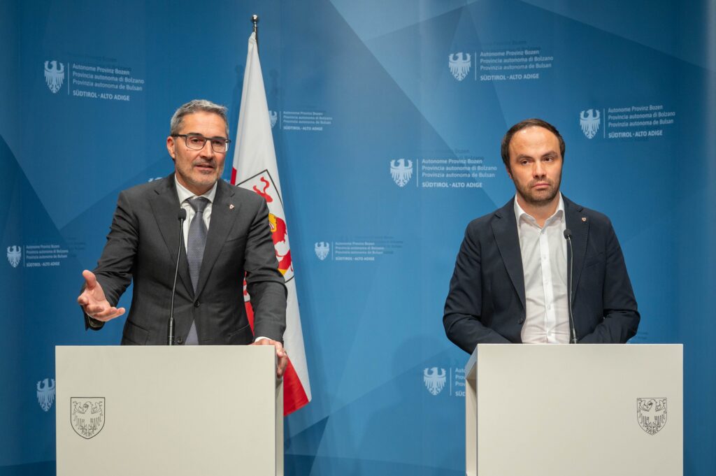 Neben den zur Verfügung gestellten Geldmitteln für eine reale Lohnerhöhung sollen im aktiven Dialog mit der Schulwelt die Rahmenbedingungen für Bildungsarbeit verbessert werden, unterstrich Landeshauptmann Arno Kompatscher (l.), bei der Vorstellung des Bildungsdialoges mit Landesrat Achammer.