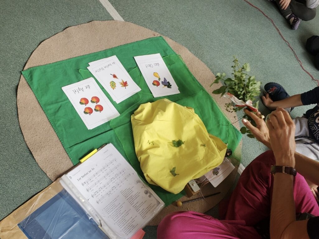 Es sind immer wiederkehrende didaktische Bildungsangebote, die Orientierung geben, wie Fingerspiele, Bewegungslieder und kleine Ratespiele. Mal wird gelacht, mal konzentriert zugehört. Und immer wieder gibt es Neues: Informationen über Ausflüge, Regeln, Themen, die die Gruppe beschäftigen.