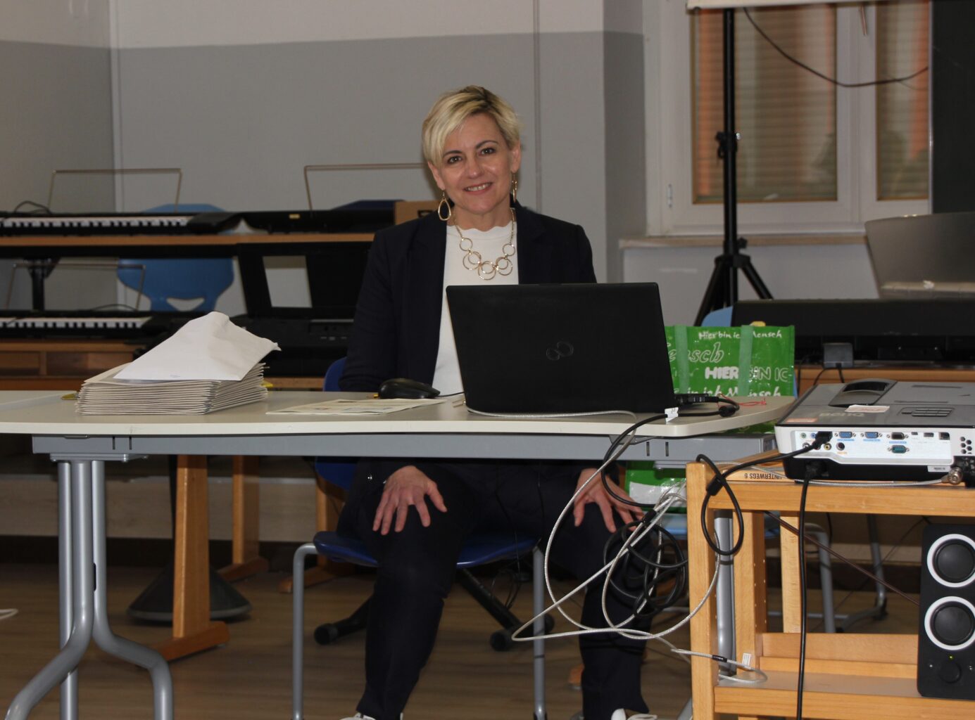 Wir treffen Michaela Dorfmann in der Mittelschule Peter Rosegger in Meran. Das Gebäude ist alt, ein wenig altbacken, aber auch heimelig – ein Ort, an dem man spürt, dass hier schon viele Generationen von Schülerinnen und Schülern gelernt haben. Dorfmann leitet den Schulsprengel Meran/Untermais mit fünf Schulstellen: die Grundschulen Sinich, Dorf Tirol und Karl Erckert in Meran/Untermais sowie die Mittelschulen in Dorf Tirol und Peter Rosegger in Meran.
