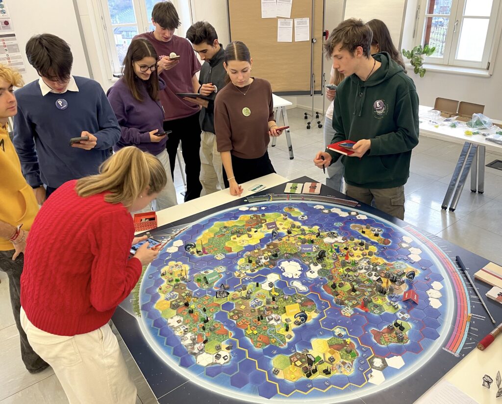 Genau das zeigte sich dieses Jahr in den Workshops zur Zukunft: Die eine Schülergruppe verhandelte globale Klimastrategien, die andere dachte Schule, Wirtschaft und den Umgang mit Künstlicher Intelligenz (KI) neu. Zwei Perspektiven, die unterschiedlicher kaum sein könnten und doch denselben Anspruch teilen: Zukunft nicht nur denken, sondern gestalten. Hier das Weltklimaspiel (Teaser-Version) mit globalen Stellschrauben, dort ein Ideenlabor für Schule und den reflektierten Umgang mit KI.