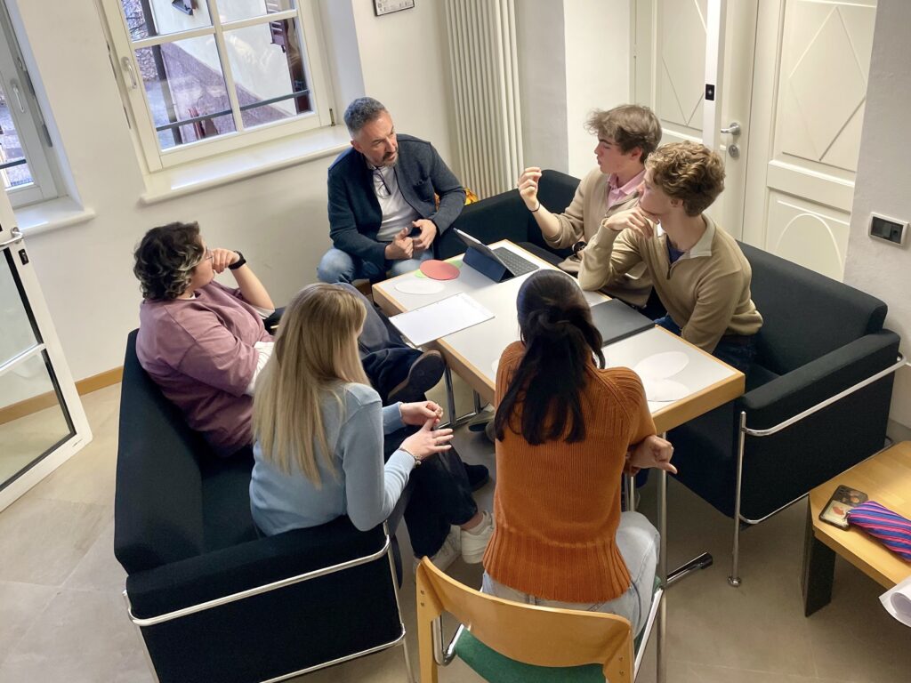 Am Nachmittag des zweiten Tages kam Klaus Egger, Südtirols Sonderbeauftragter für Nachhaltigkeit, dazu. Im offenen Gespräch mit den Jugendlichen verflochten sich die Themen der Workshops – Schule, Klima, Verantwortung – als zusammenhängende Aufgabe.