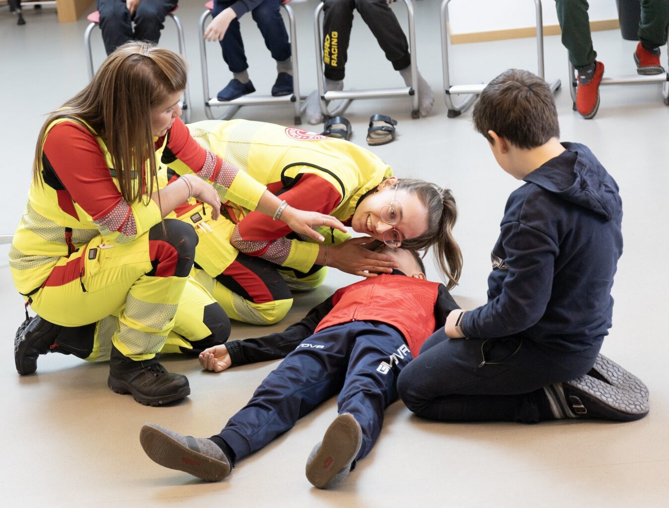 Es wirkt unscheinbar, ist aber bemerkenswert: In einem Klassenzimmer kniet eine Viertklässlerin neben ihrer Mitschülerin. Ruhig kontrolliert sie die Atmung, legt den Kopf sanft nach hinten, bringt den Körper in die stabile Seitenlage – Handgriffe, die viele Erwachsene nur vom Hörensagen kennen. Keine Übungspuppe, keine Sanitäterin. Nur zwei Grundschulkinder, die wissen, wie man hilft.